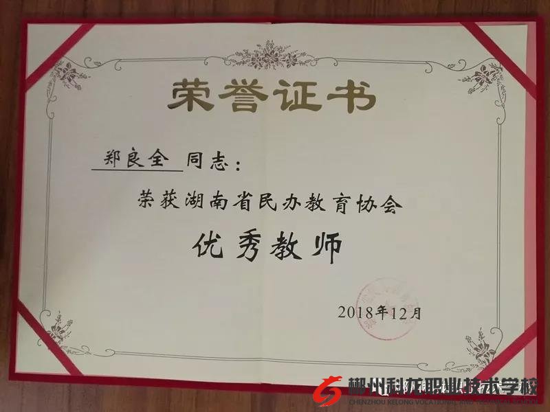郴州科龍職業(yè)技術(shù)學(xué)校多年來一直是湖南省民辦教育協(xié)會(huì)理事單位、會(huì)員單位,在此次表彰活動(dòng)中我校鄭良全校長被評(píng)為“優(yōu)秀教師”。